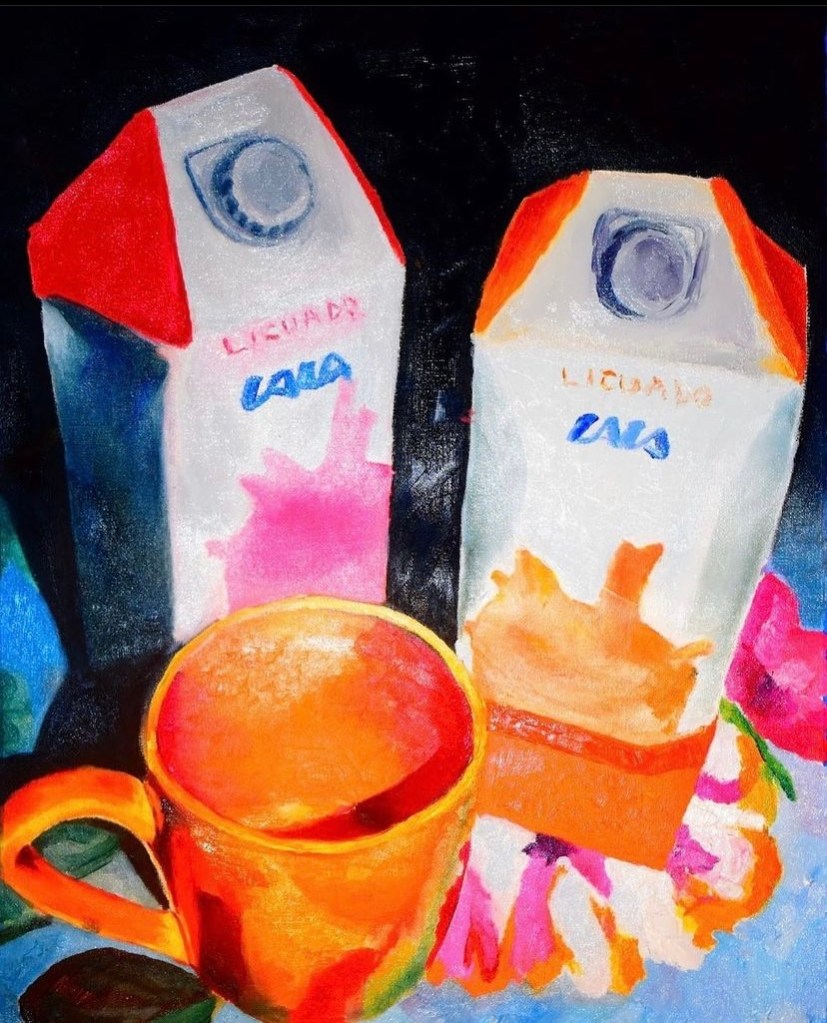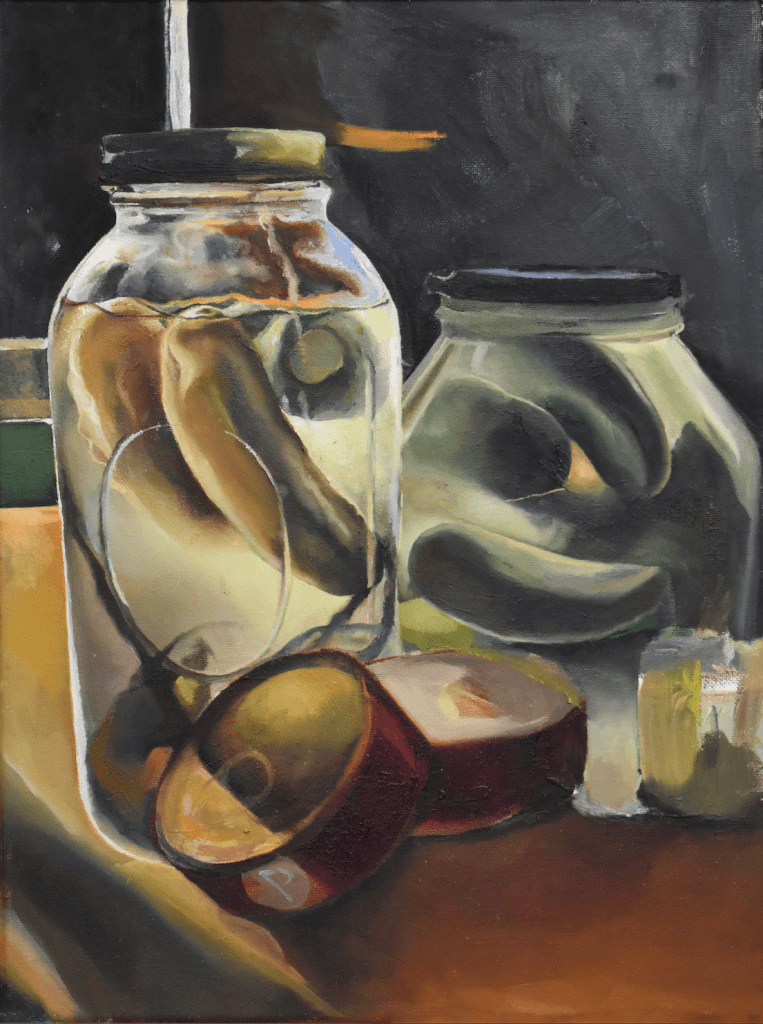 MIDNIGHT SNACK IS AN OIL PAINTING OF MILÓSZ TUREK WHOSE FACIAL EXPRESSION DELIVER WHAT IS HIS NIGHTLY HABIT. POSSESSED BY HIS SWEET TOOTH, HIS CRAVING, HE IS CAPTURED, CAUGHT MID-ACT WITH A CAMERA, A PAINTBRUSH AND BY HIS SUSPECTING DAUGHTER.